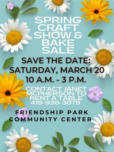 Contact Janet McPherson to rent a table at 419-936-3079.