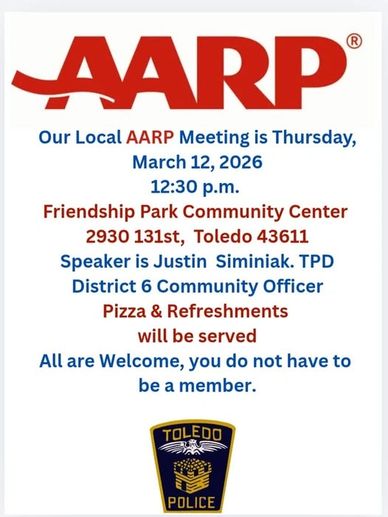 AARP meetings are held at 12:30 p.m. Snacks & refreshments are be served.